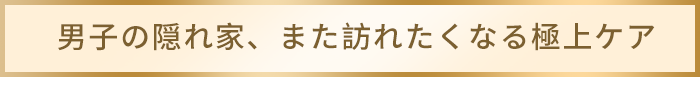 当店は、疲れた男性の強い味方として、気軽にご利用できる店として、皆様の疲れた心と体を癒していきます。疲れを感じた時には、お仕事の隙間時間やお仕事帰りなどにお気軽にお立ち寄りください。癒し系セラピストによる癒しタイムをぜひお楽しみください。皆様のお越しを心よりお待ちしております。